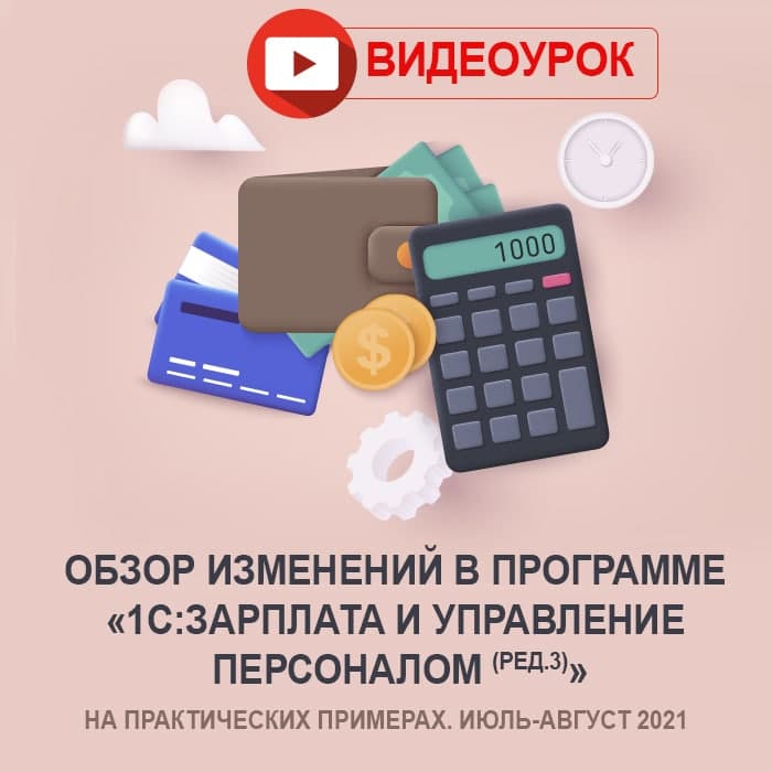 Видеоурок «Обзор изменений в программе «1С:Зарплата и управление персоналом (ред.3)» на практических примерах. Июль-август 2021»
